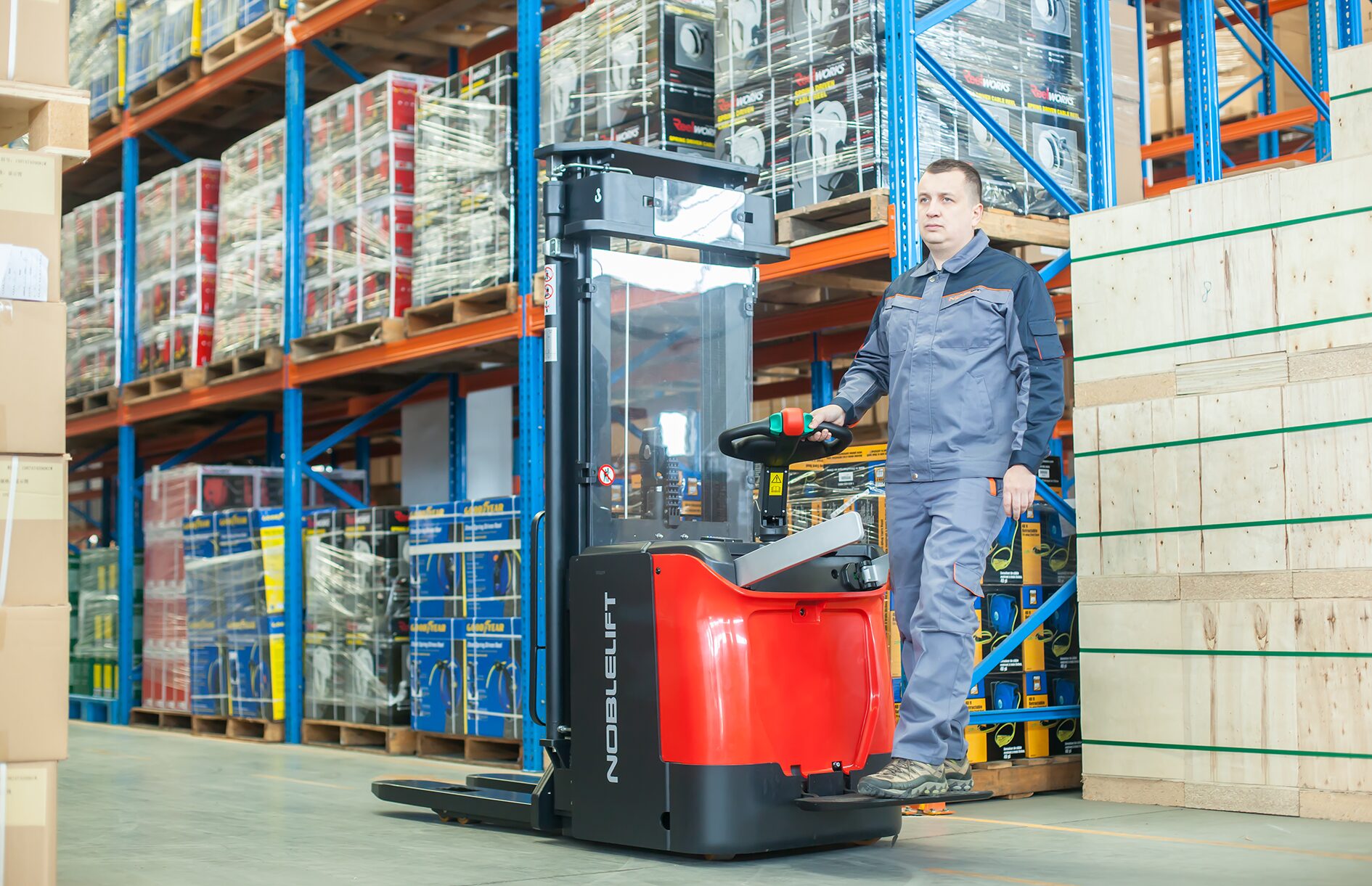 Dzięki kompaktowym wymiarom oraz promieniowi skrętu wynoszącemu zaledwie 1450 mm, wózek świetnie radzi sobie w wąskich korytarzach magazynowych i ograniczonych przestrzeniach roboczych. Intuicyjne sterowanie oraz precyzyjny układ hydrauliczny umożliwiają łatwe operowanie ładunkiem nawet w wymagających warunkach.